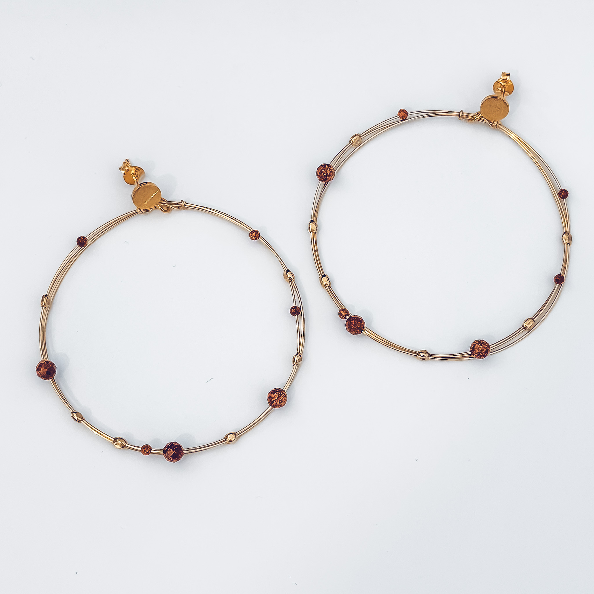 Maxi créoles en gold-filled - Diamètre 50-55mm - Perles d'eau douce ou pierre de soleil Collection Semainier - se décline en jonc et bague Paiement sécurisé — CB & PayPal3x sans frais — Avec AlmaGarantie 2 ans — Bijoux réparablesRetours sous 30 jours — Satisfait ou remboursé