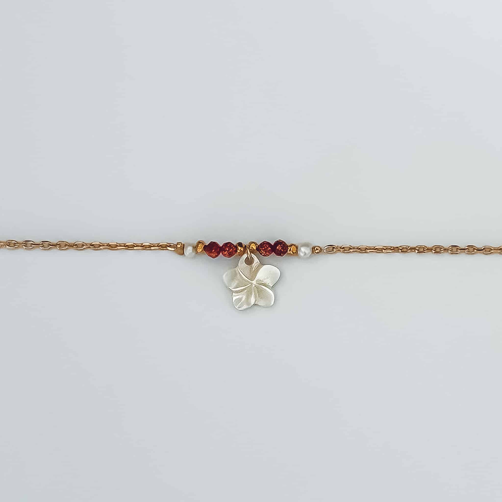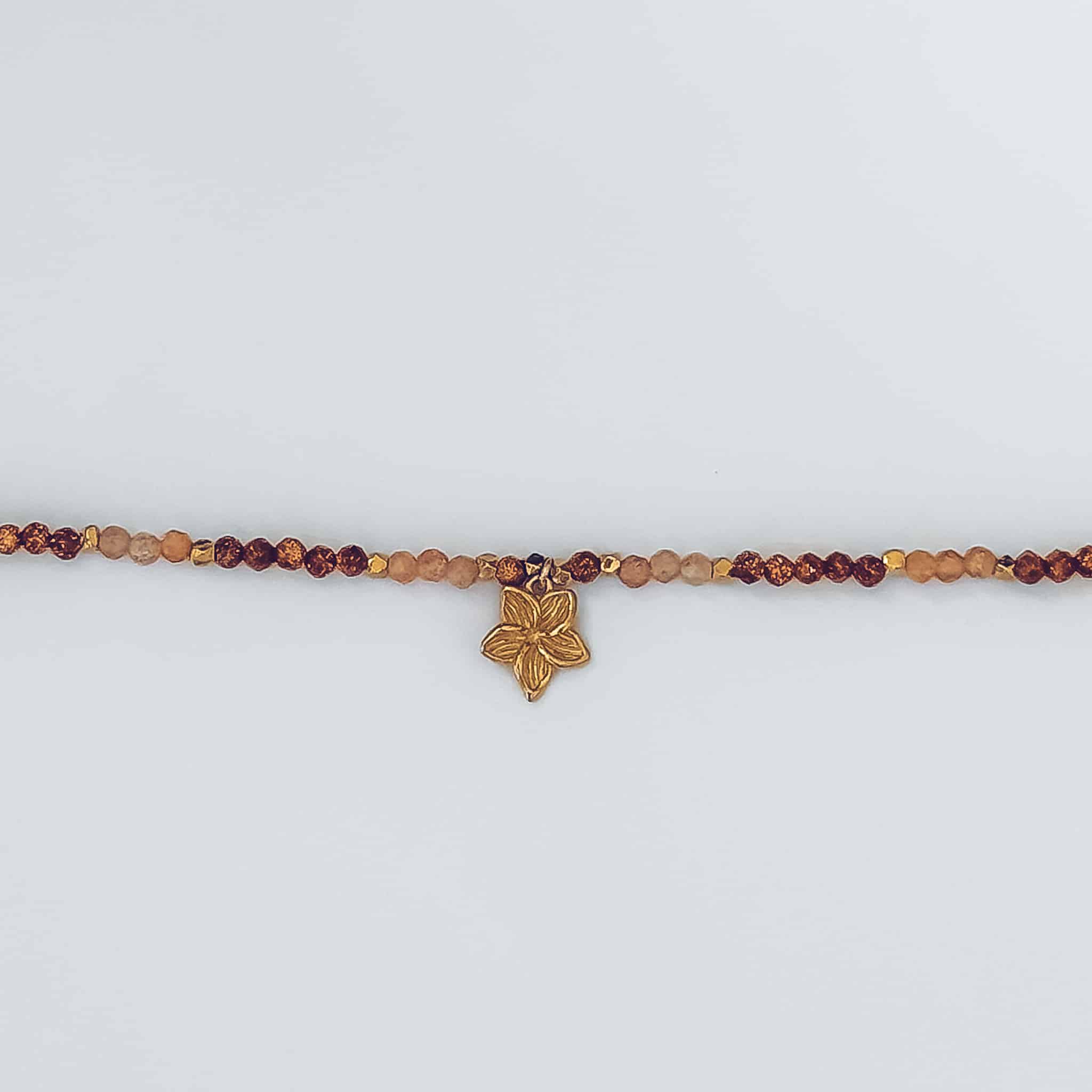 Le bracelet Flora associe des pierres de soleil lumineuses, des perles naturelles et une délicate fleur dorée pour un bijou solaire inspiré des fleurs tropicales. Paiement sécurisé — CB & PayPal3x sans frais — Avec AlmaLivraison offerte dès 50€— Réunion & MétropoleGarantie 2 ans — Bijoux réparablesRetours sous 30 jours — Satisfait ou remboursé
