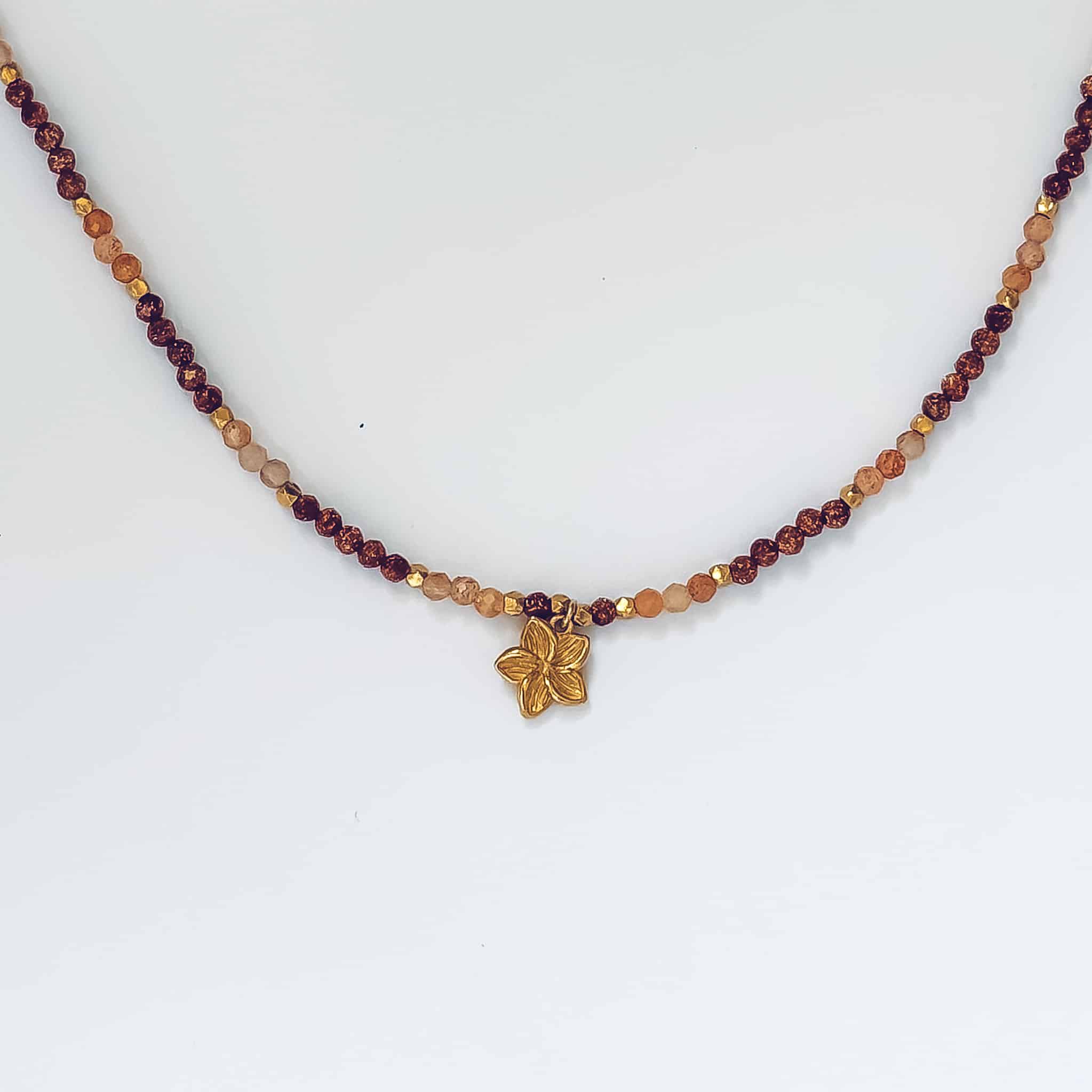 Le ras de cou Flora associe des pierres de soleil lumineuses, des perles naturelles et une délicate fleur dorée pour un bijou solaire inspiré des fleurs tropicales. Paiement sécurisé — CB & PayPal3x sans frais — Avec AlmaLivraison offerte dès 50€— Réunion & MétropoleGarantie 2 ans — Bijoux réparablesRetours sous 30 jours — Satisfait ou remboursé