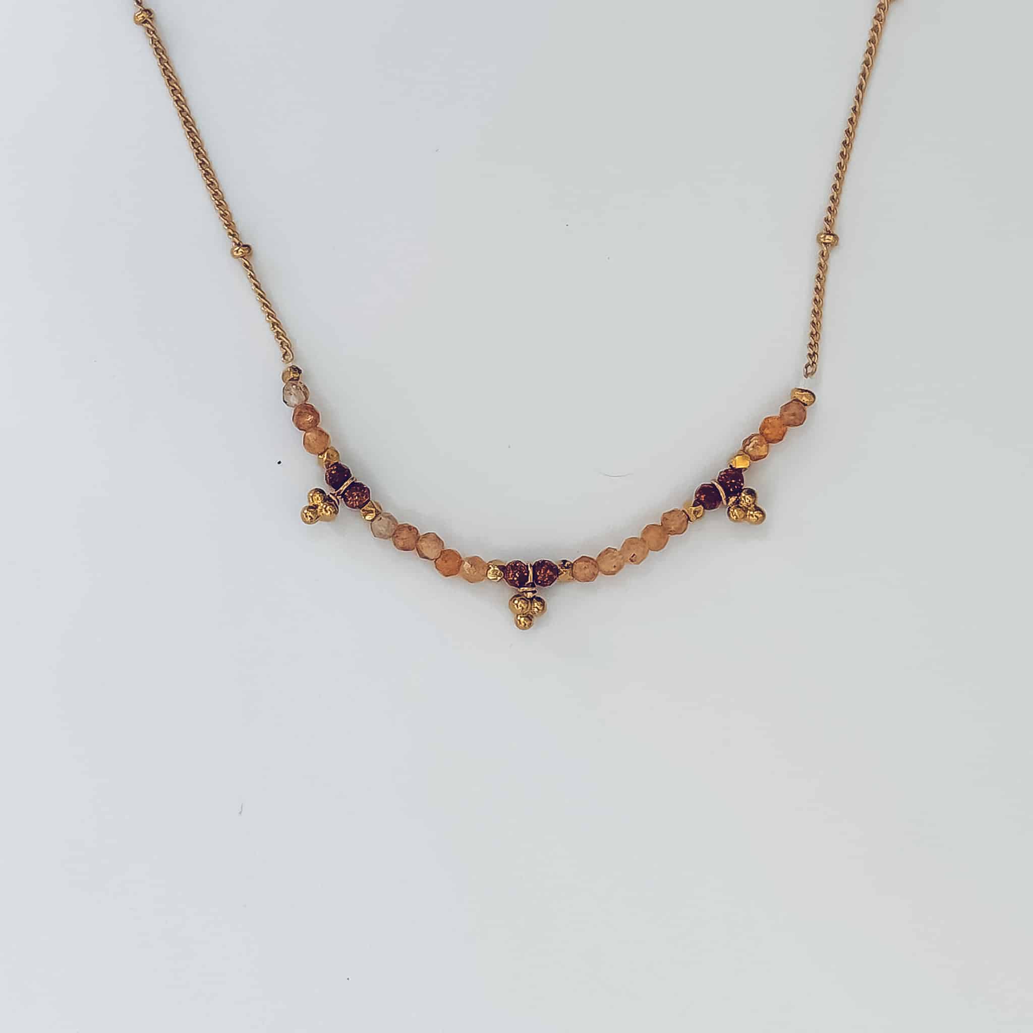 Le ras de cou Gypsy associe des pierres de soleil lumineuses et de petites breloques dorées pour un bijou délicat à l’esprit bohème et solaire. Paiement sécurisé — CB & PayPal3x sans frais — Avec AlmaLivraison offerte dès 50€— Réunion & MétropoleGarantie 2 ans — Bijoux réparablesRetours sous 30 jours — Satisfait ou remboursé