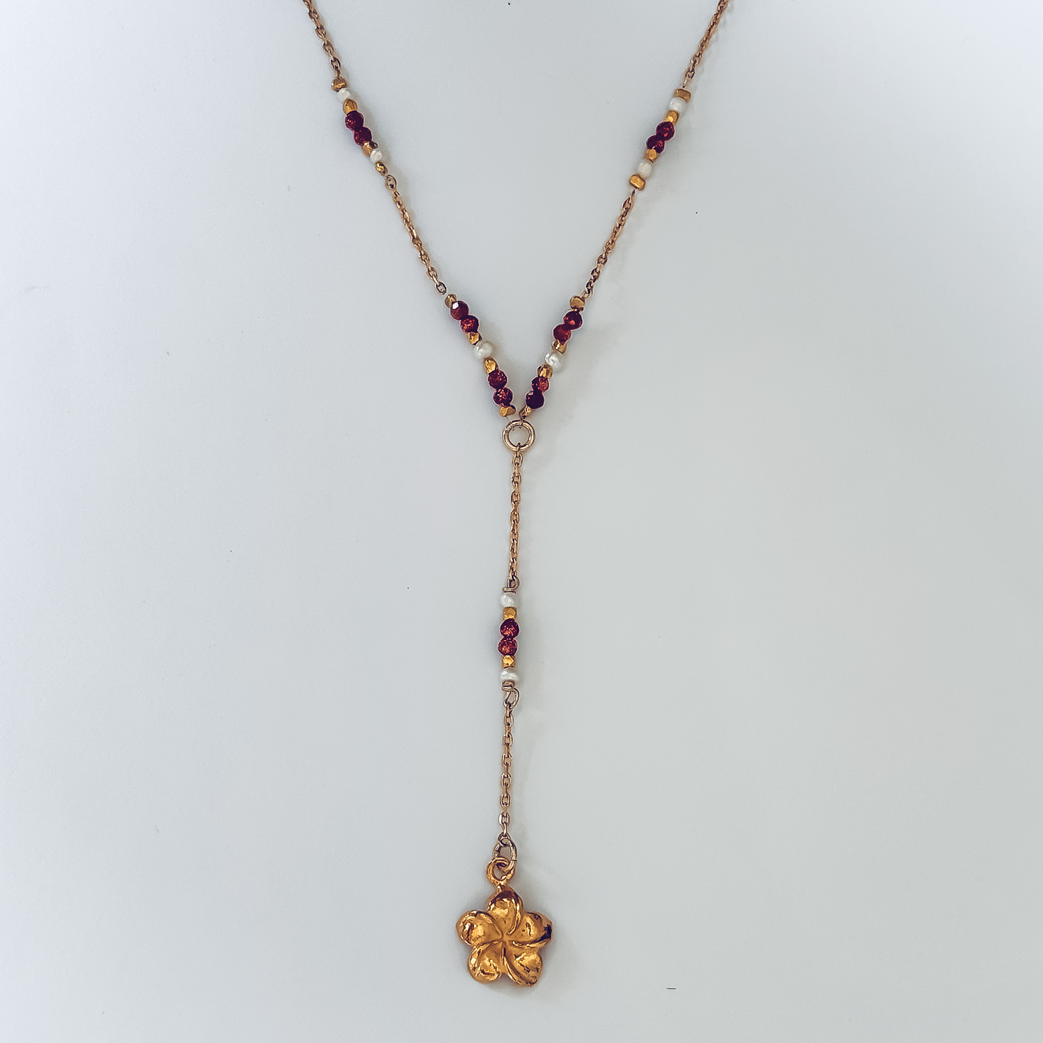 Le collier chapelet Boho associe des perles rouges lumineuses, des perles d’eau douce et une fleur de frangipanier pour un bijou solaire à l’esprit bohème. Paiement sécurisé — CB & PayPal3x sans frais — Avec AlmaLivraison offerte dès 50€— Réunion & MétropoleGarantie 2 ans — Bijoux réparablesRetours sous 30 jours — Satisfait ou remboursé
